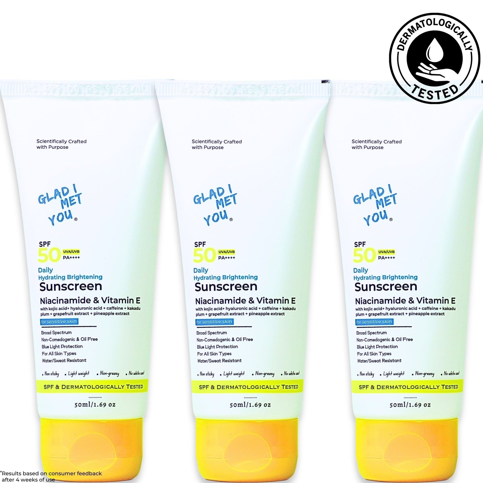 - Broad Spectrum Protection: SPF 50 PA++++ with UVA/UVB and Blue Light Protection With 3%Niacinamide & 1%Vitamin E