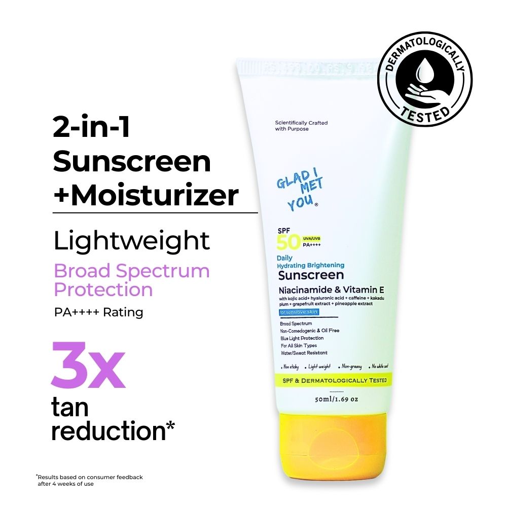 - Broad Spectrum Protection: SPF 50 PA++++ with UVA/UVB and Blue Light Protection With 3%Niacinamide & 1%Vitamin E